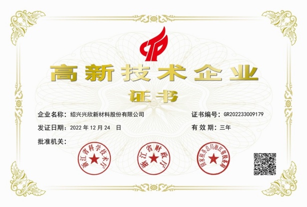 紹興興欣新材料股份有限公司成立于2002年06月27日,占地面積122畝,位于杭州灣上虞經(jīng)濟(jì)技術(shù)開(kāi)發(fā)區(qū)拓展路2號(hào),現(xiàn)有職工200余人,專業(yè)技術(shù)人員50余人;博士、碩士研究生30余人組成的一支知識(shí)型、專業(yè)化的技術(shù)科研團(tuán)隊(duì)。公司面向全球市場(chǎng),專業(yè)開(kāi)發(fā)電子化學(xué)品、環(huán)?;瘜W(xué)品、醫(yī)藥中間體、高分子材料等先進(jìn)新材料重點(diǎn)領(lǐng)域的省級(jí)科技型企業(yè);建有浙江上虞、安徽東至兩個(gè)生產(chǎn)基地。目前為“國(guó)家高新技術(shù)企業(yè)”、浙江省“隱形冠軍”企業(yè)、浙江省專精特新中小企業(yè);建有“省級(jí)”研究開(kāi)發(fā)中心,共建天津大學(xué)浙江紹興研究院電子化學(xué)品研發(fā)中心。
